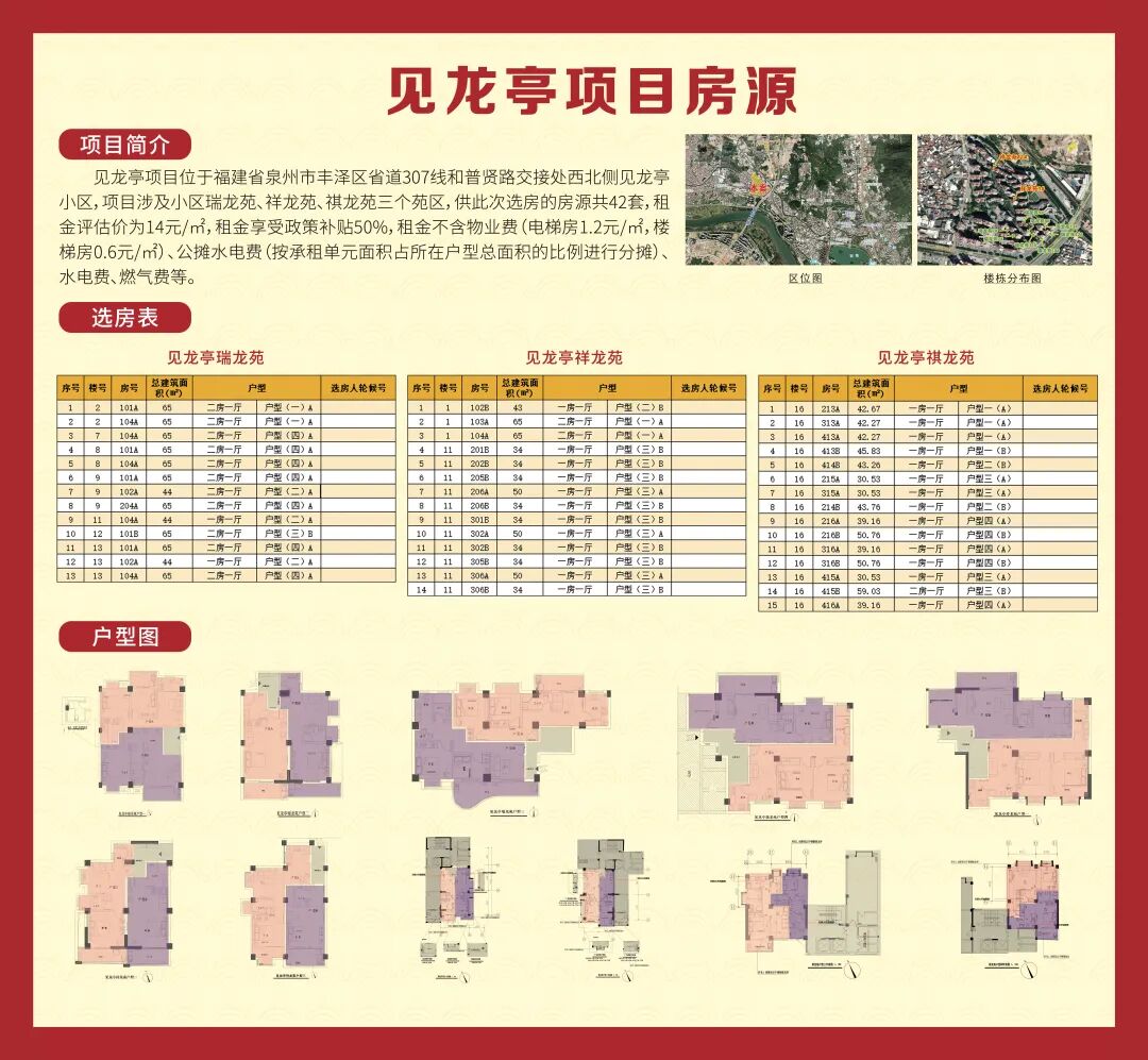 泉州城建城市运营有限责任公司(以下简称市城运公司)筹集的市级投资项目剩余房源(结合货币化补贴)77套(房源清单详见下表)。