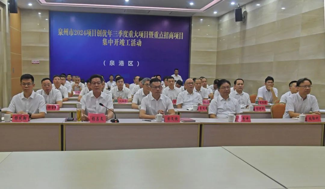 10月8日上午,泉州市举行2024项目创优年三季度重大项目暨重点招商项目集中开竣工活动。泉港九龙岗海丝文旅产业园项目参加集中开工视频连线。
