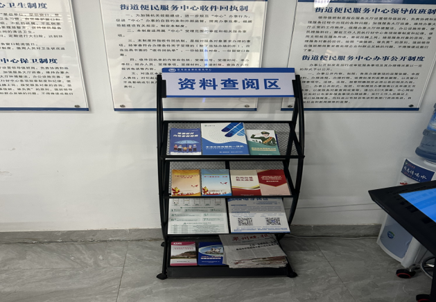 2.资料查阅区:配备政务公开资料展示架,分类摆放党报党刊、政府公报、办事指南、各类政策宣传册等资料,方便群众查阅。