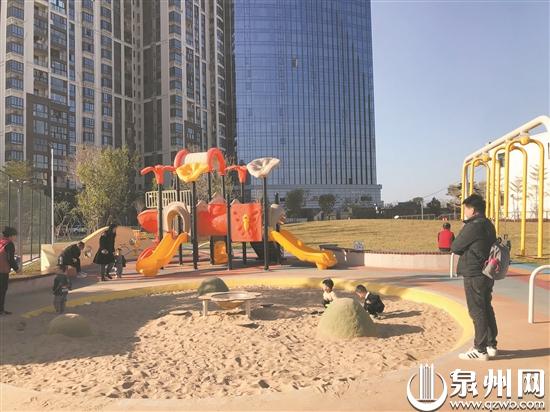 儿童活动区里,不少大人带着孩子在玩,孩子们有的在玩滑滑梯,有的在沙坑里堆城堡,大人们则站在旁边,一边晒太阳,一边聊天。黄阿婆住在公园旁边的皇江御景小区,她介绍,自从有了这个公园,只要天气晴好,她每天都会带两岁的孙子来玩,“多了一个活动的好去处,小孩子有玩伴,大人也可以多认识一些邻居,挺好的”。