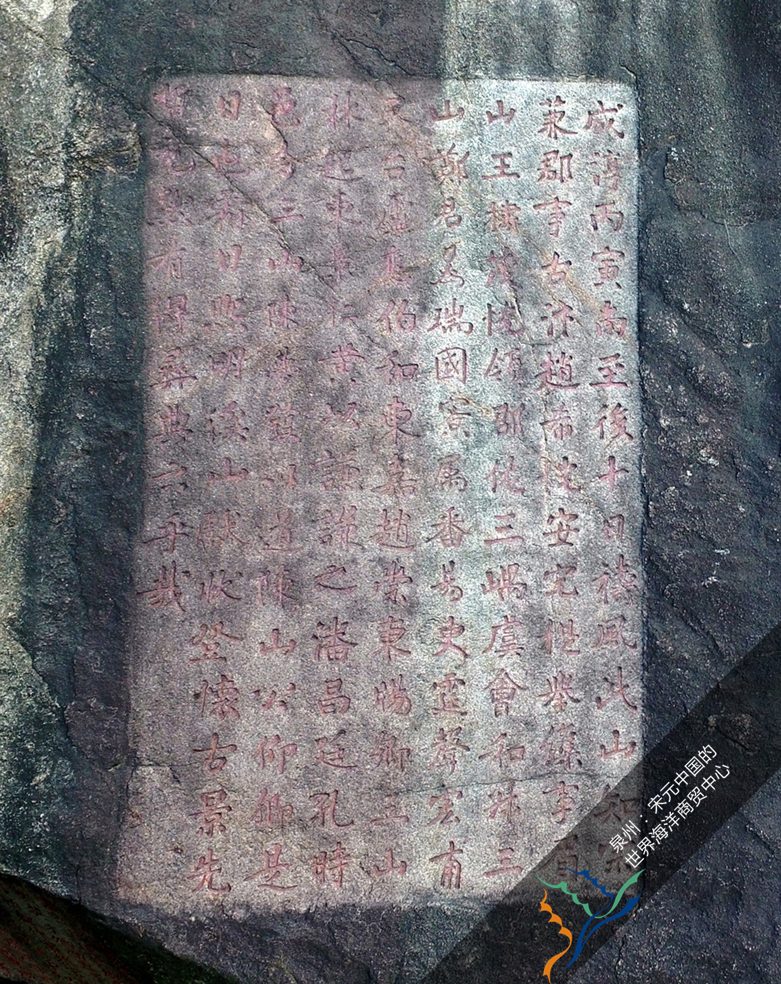 这是文字最简洁的一方石刻,仅用24个字就清晰记录了祈风仪式。时间是1247年,祈风人是泉州太守兼市舶司长官赵师耕,祈风仪式后还上山游览。