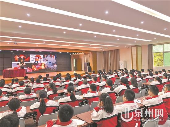 4月25日,“生态环境宣传进校园”系列活动走进晋江市明江实验小学,黎明职业大学轻工学院副教授曾飞虎为现场百名同学带来生态环境科普讲座。