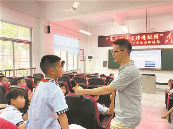 6月21日下午,由泉州市生态环境局和东南早报联合主办的“生态环境宣传进校园”系列活动走进鲤城区新步实验小学。厦门大学海洋生物学博士、泉州师范学院讲师崔玉栋受邀为该校小记者带来《鱼儿都去哪了——过度捕捞对海洋生态的影响》讲座。