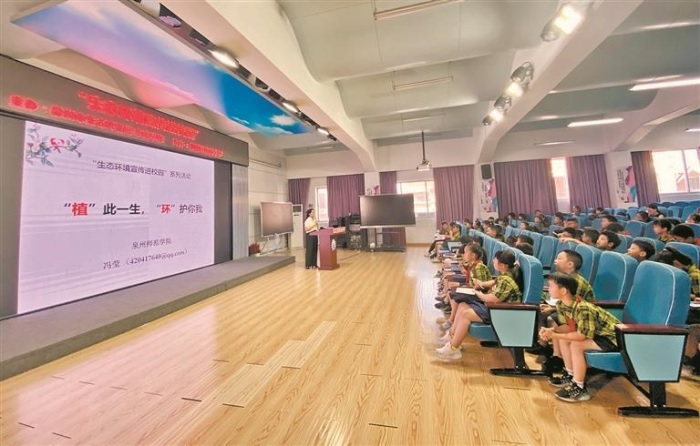9月27日,由泉州市生态环境局、东南早报主办的“生态环境宣传进校园”系列活动走进鲤城区实验小学。泉州师范学院资源与环境科学学院副教授冯莹以《“植”此一生 “环”护你我》为题,为现场百名小记者带来生动的生态环境保护公益讲座。