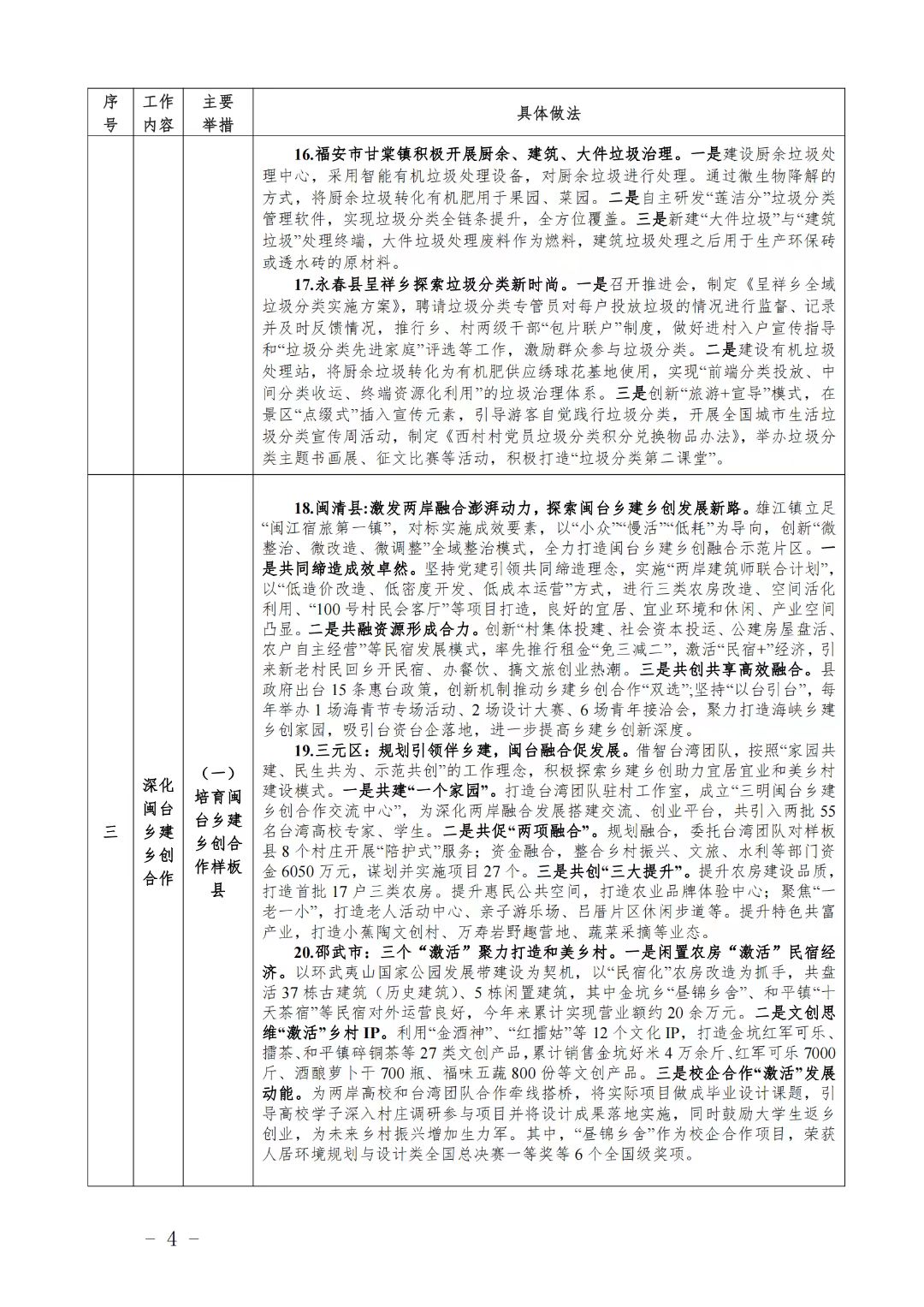 为学习运用“千万工程经验”,持续深化“深学争优、敢为争先、实干争效”行动,激励各地积极作为、守正创新,推动互学互鉴、形成氛围,促进全省村镇建设服务水平和管理效能提升,省住建厅在各地申报的基础上,结合日常资料收集和调研了解,对各地在提升农房建设品质、加强乡村环境治理、深化闽台乡建乡创合作等方面的经验做法进行梳理,形成了《福建省2023年村镇建设可复制经验清单》。其中,泉州市有3个经典案例入选。
