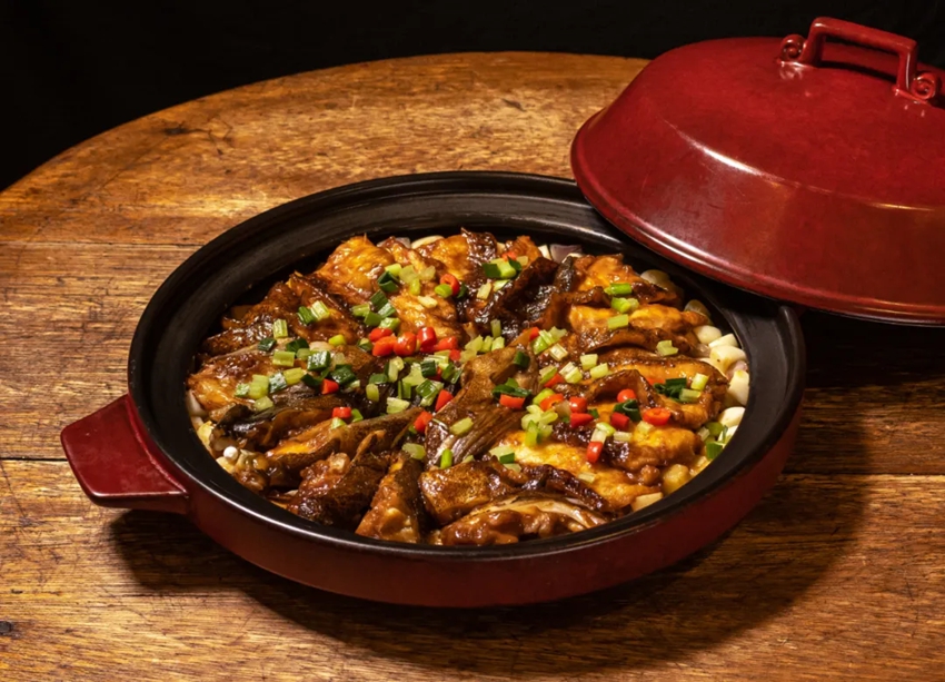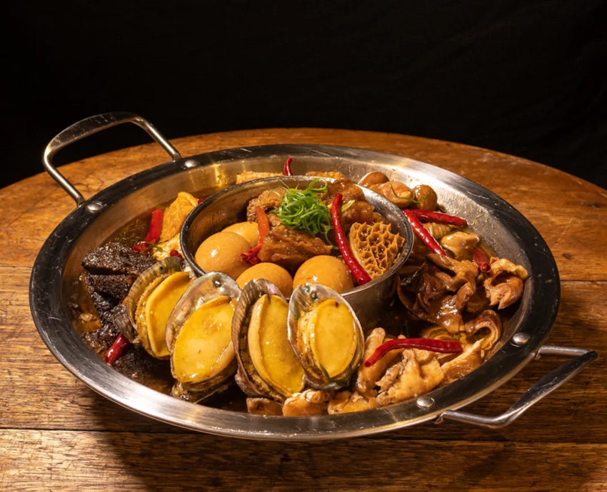 大肠、套肠、鸡蛋、米料、蛋肠、豆腐、牛肉、三层肉、牛筋、牛肚、肺胘等食材通过焖卤,香浓四溢。本道菜源自南安街头卤担演变,新增丰富卤制食材,是较有代表性的闽南古早味,丰盛的食材好比南安悠久深厚的文化底蕴,堪称“海滨邹鲁”,涵盖了“山海”,蕴含着中华文明中“金木水火土,仁义礼智信”的深厚理念,耐人寻味,引人赞叹。
