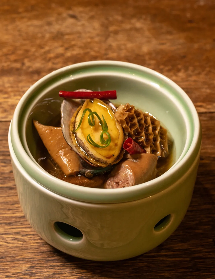 东田溢鸭汤是一道富有闽南传统特色古早味的滋补汤,相传是清代皇室女性所喜爱的养颜秘方。该汤熬制借助的是蒸汽,讲究一个慢字。密闭的空间锁住水分,烹饪时间更长,汤汁久炖而不沸,鲜味和香味可以成倍生成。浓浓的一碗汤浓缩一整只鸭子的所有精华,色泽如茶水般透亮,揭盖则清香四溢,加入虫草补肾益精,调节肝功能,补气补血,滋阴养颜。向内崇尚传统,坚守中华文化根基;向外不惧外敌,发展“通洋裕国”的经营理念。郑成功一生文韬武略,多才多艺,几掬馨香,流芳百世。