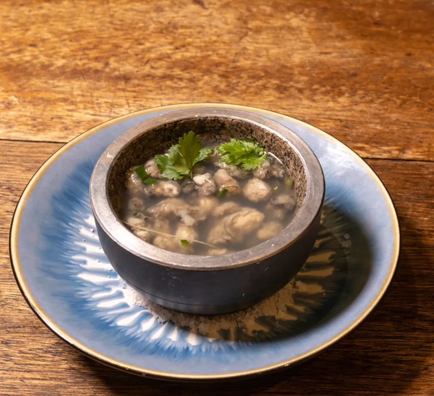 南安石井镇,南临金门,是民族英雄郑成功的故里、省级历史文化名镇,这里盛产海蛎,其中奎霞产地为上品,肉嫩味鲜,营养丰富,有“海中牛奶”之美誉,其含碘量比牛奶和蛋黄高出200倍,其含锌量之高,为各种食物之冠。奎霞海蛎汤以新鲜海蛎制作而成,汤汁清香鲜甜而吸引人,海蛎鲜明饱满,入口软糯鲜嫩。相传公元1661年,郑成功率领军队从泉州南安出发,攻打被荷兰占据的台南。荷兰军队在撤退时,将米粮藏匿起来以阻碍郑军补给。面对缺粮困境,郑军士兵因地制宜地创造出海蛎的多种做法,流传成为海峡两岸的知名小吃。海蛎清汤煮制,佳肴源自本色演出,意喻郑成功意气风发、雷厉风行的作风。